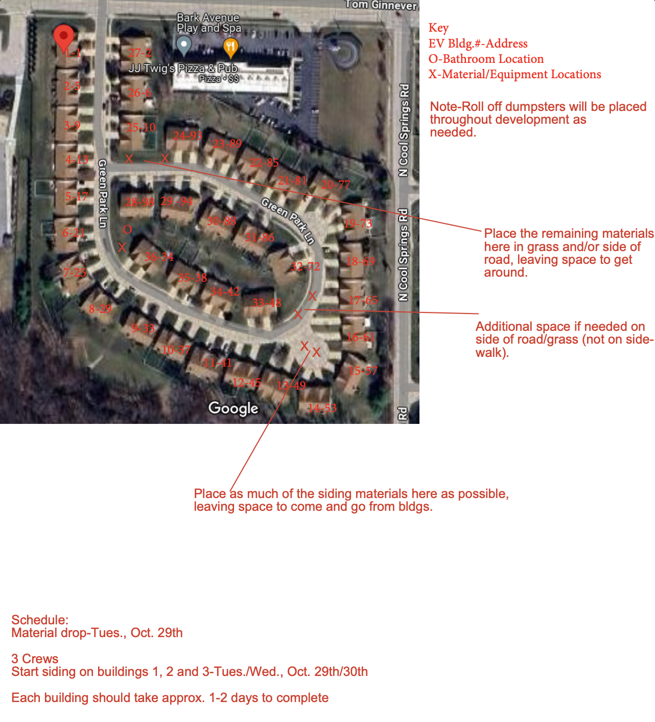 WINDOWS: Window replacements will be started on Monday, Nov. 18th, weather permitting. More information will be forthcoming on what to expect. Storage PODS are being delivered next week Monday for window storage and will be placed on the street near UNITS 42 and 70 Green Park Ln.